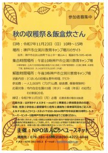 秋の収穫祭&飯盒炊さん 参加家族募集中!新着!!